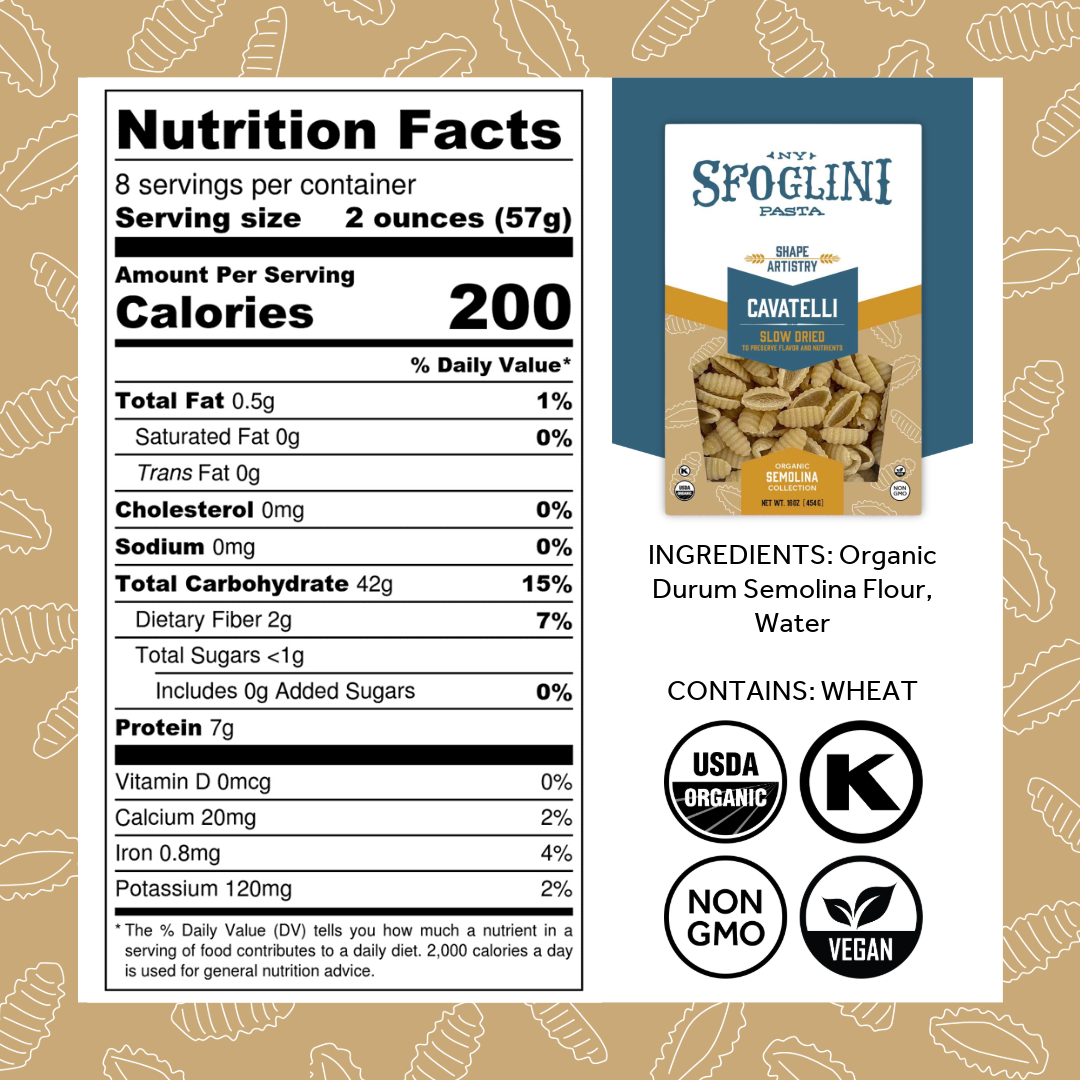 Cavatelli, Organic Durum Semolina Pasta